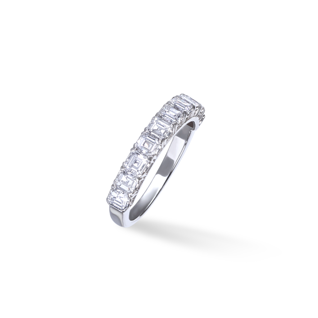 Whilst known for our coloured stones we also dabble with some diamonds! A staple of the deco style this Assher cut diamond half eternity ring goes so well as part of a stack with other Bibelot coloured stacking rings