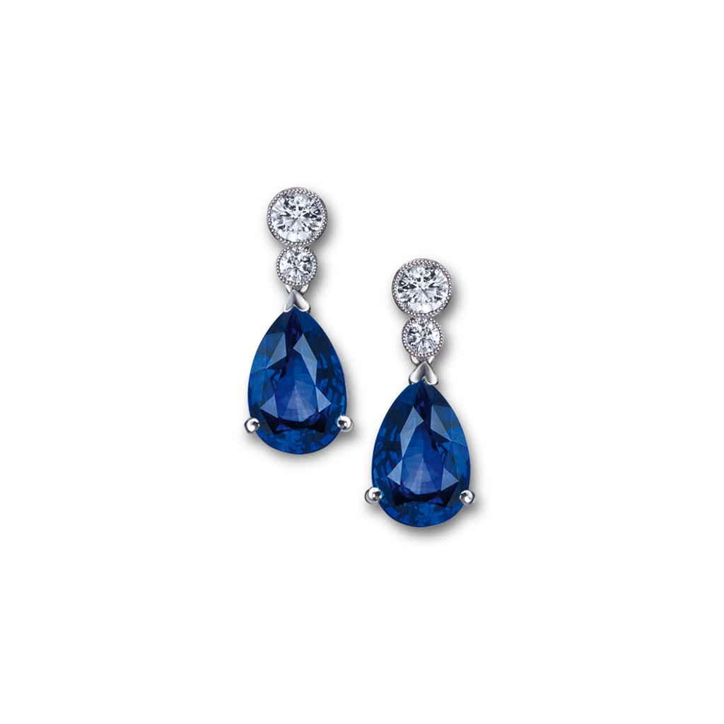 A timeless classic pair of drop shape sapphire and diamond earrings, pared down simplicity, we let the sapphires do the talking