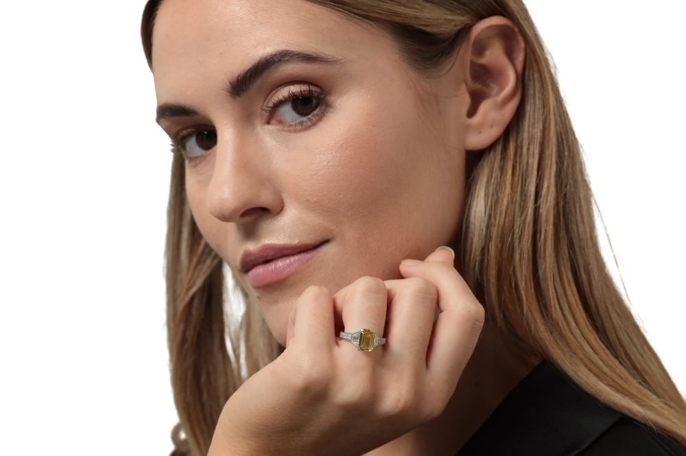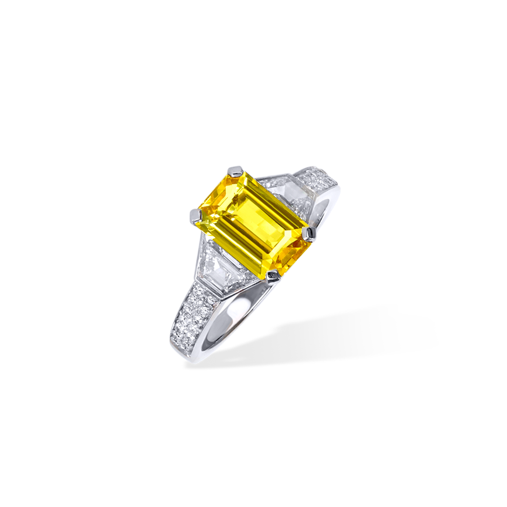 Yellow Sapphire & Trapeze Diamond Ring