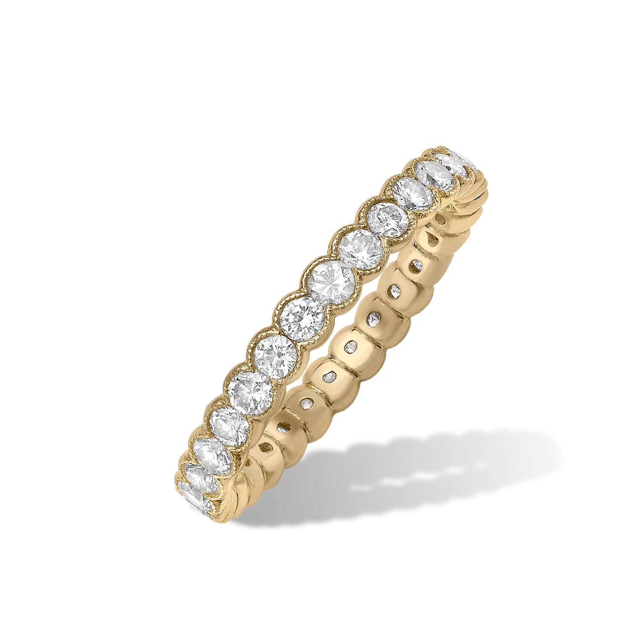 Rubover set Diamond Full Eternity Ring mounted in 18ct yellow gold