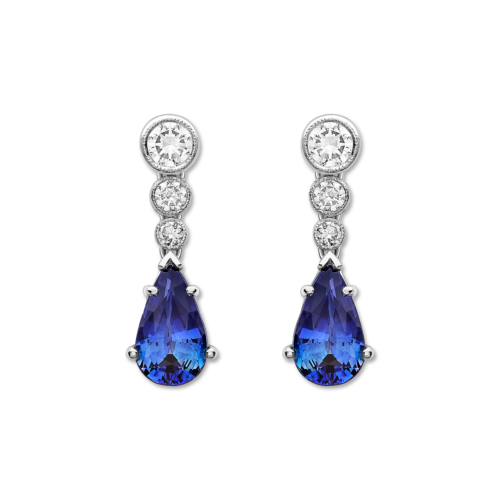 Classic drop shape sapphire and diamond earrings mounted simply in 18ct white gold